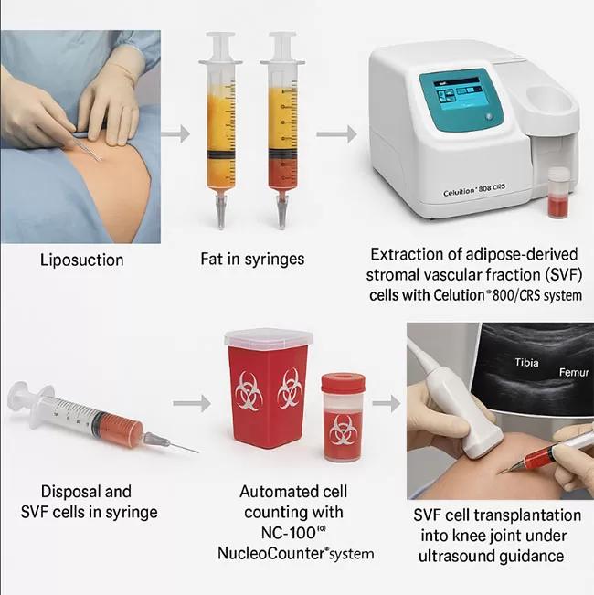 تزریق SVF روشی نوین در پزشکی بازساختی است که از سلولهای مشتقشده از بافت چربی بیمار استفاده میکند. این سلولها حاوی فاکتورهای رشد و مواد ضدالتهابی هستند که به ترمیم غضروف و کاهش التهاب کمک میکنند. برداشت چربی با تکنیک لیپوساکشن سبک انجام شده و پس از پردازش، بخش غنی از سلولها به زانو تزریق میگردد. این روش کمتهاجمی، بدون بیهوشی عمومی، و با دوره نقاهت کوتاه است. بهترین نتایج در بیماران با آرتروز خفیف تا متوسط دیده میشود. مزیت اصلی سلولدرمانی، استفاده از منابع بدن خود بیمار و کاهش خطر واکنش ایمنی است.